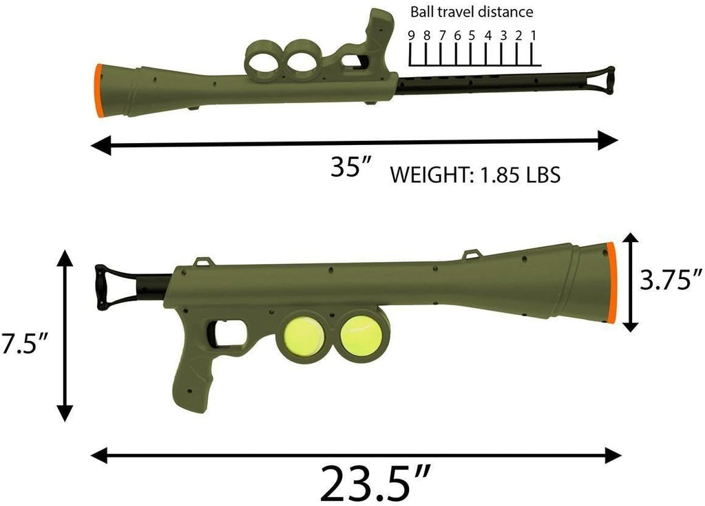 VARIABLE DISTANCE Adjust your dog's distance to throw the tennis ball through the handle. The further you drive backwards, the more the tennis ball will explode, meaning your dog will need more exercise.
