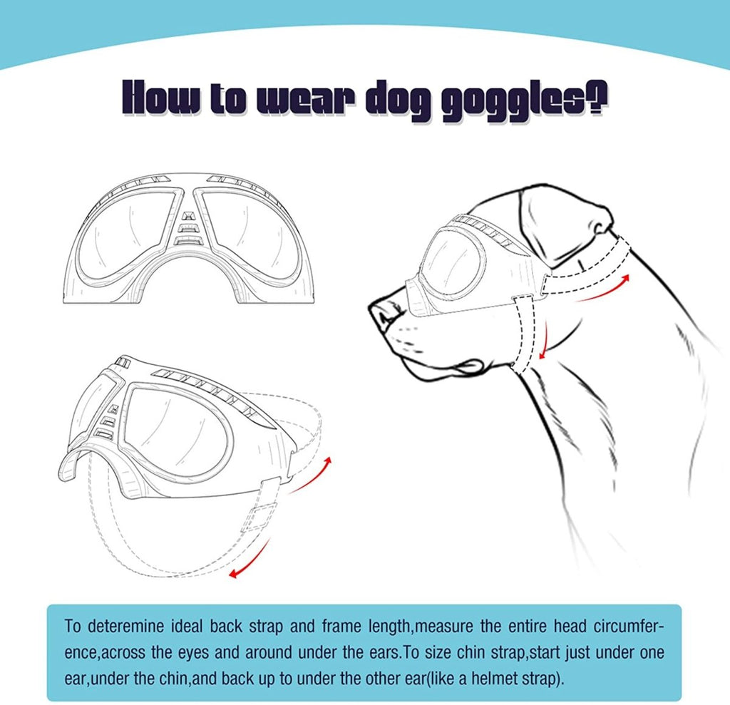 The Dog goggles have a soft TPE frame and 2 adjustable elastic straps. The lenses are resistant to ultraviolet rays.