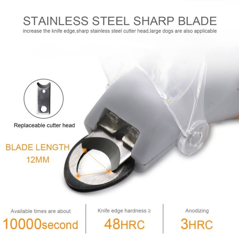 Β Professional Pet LED Nail ClipperΒ ensures that you can trim your pet's nails without risking injury or discomfort to the pet. The super bright LED light means you can see exactly where you need to cut. It also has nailΒ storageΒ so you don't have to clean nail shavings on the floor and clothes.Β